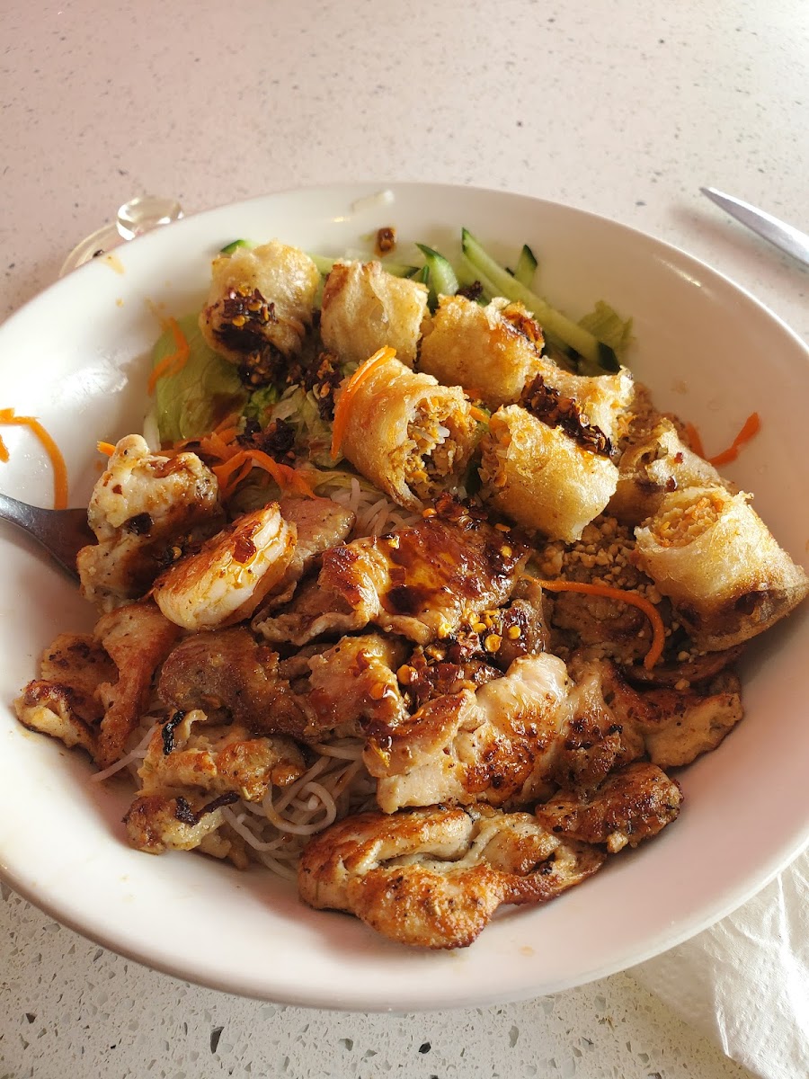 As you move through the menu, don't miss the lunch and dinner specialties. The Noodle Bowl (Bun) is a must-try, complete with spring rolls and grilled pork served over a bed of vermicelli and fresh vegetables. This dish balances texture and flavor expertly, providing a satisfying crunch from the vegetables and a savory richness from the grilled pork. For a vegetarian option, the Vegetarian Noodle Bowl is equally delightful, infusing classic Vietnamese favorites with fresh tofu and crisp veggies.